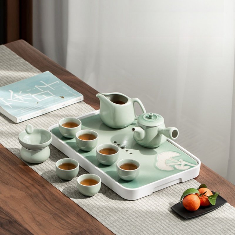 This modern Japanese tea set combines contemporary design with centuries-old tradition. The soft green color of the porcelain creates a calming atmosphere, while the delicate yet durable construction ensures a long-lasting addition to your home. The carefully designed teapot and matching teacups provide the perfect setting for a relaxed and refined tea experience.