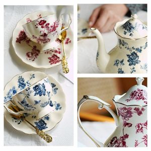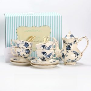 This Vintage English Rustic Romantic Blue Rose Tea and Coffee Set makes for an unforgettable gift. Whether it’s for a birthday, wedding, or anniversary, this set adds an elegant touch to any celebration. The beauty of the blue roses combined with the high-quality craftsmanship makes it a perfect gift for tea and coffee lovers or anyone who appreciates vintage-style tableware. It’s not only a functional set for daily use but also a cherished heirloom that can be passed down through generations.