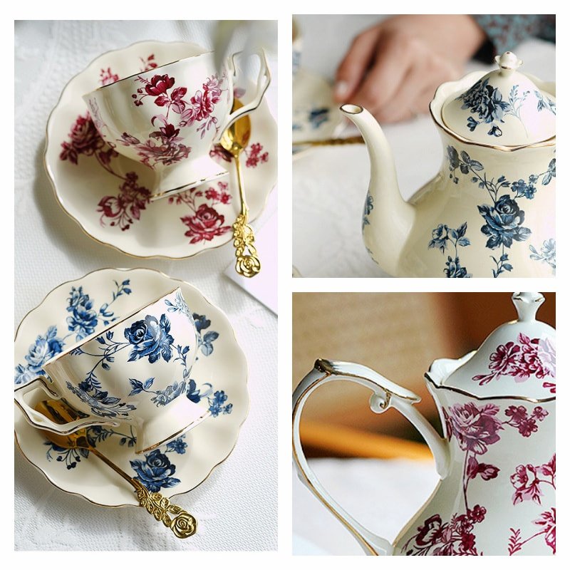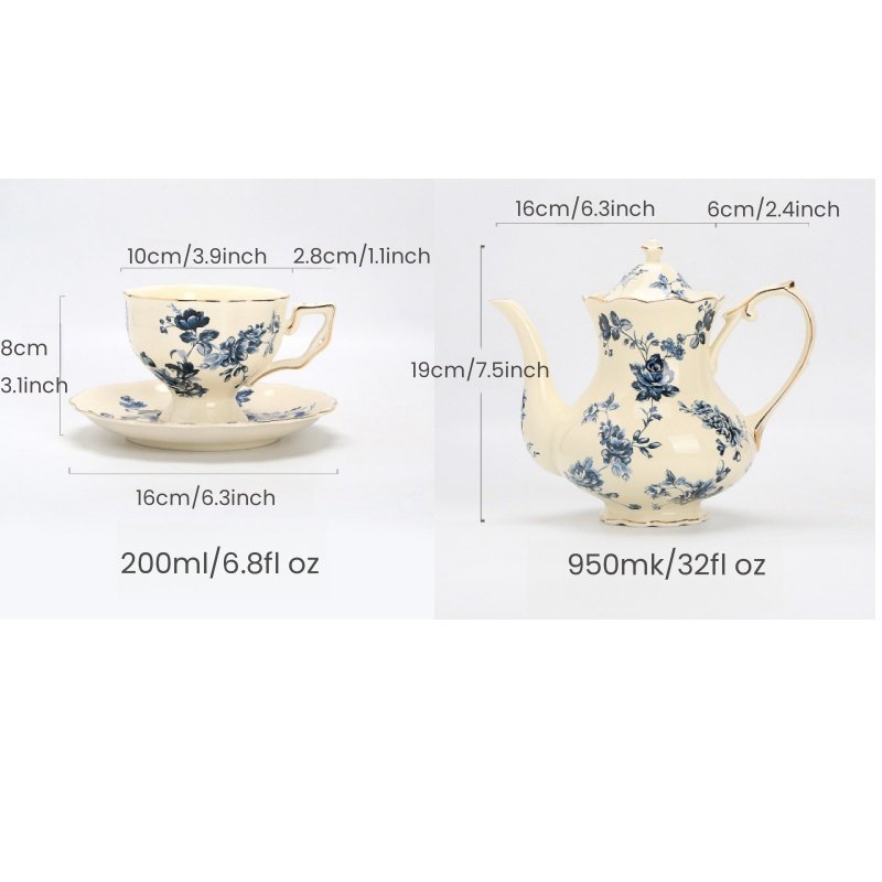 Whether you prefer sipping tea or coffee, the set is designed to elevate every moment. The 950ml teapot can easily serve multiple guests, while the 200ml tea cups are perfect for enjoying your favorite blends in style. The set’s versatility allows it to be used for everything from intimate one-on-one tea sessions to larger gatherings with family and friends. The Vintage English Rustic Romantic Blue Rose Tea Set not only makes an impression with its beauty but also provides a comfortable and practical way to enjoy your beverages.