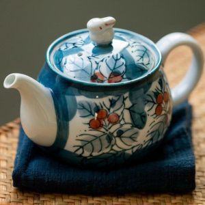 Be the first to review “Vintage Mino Yaki Ceramic Japanese Tea Kettle with Hand Painted Leaf Design and Rabbit Lid”