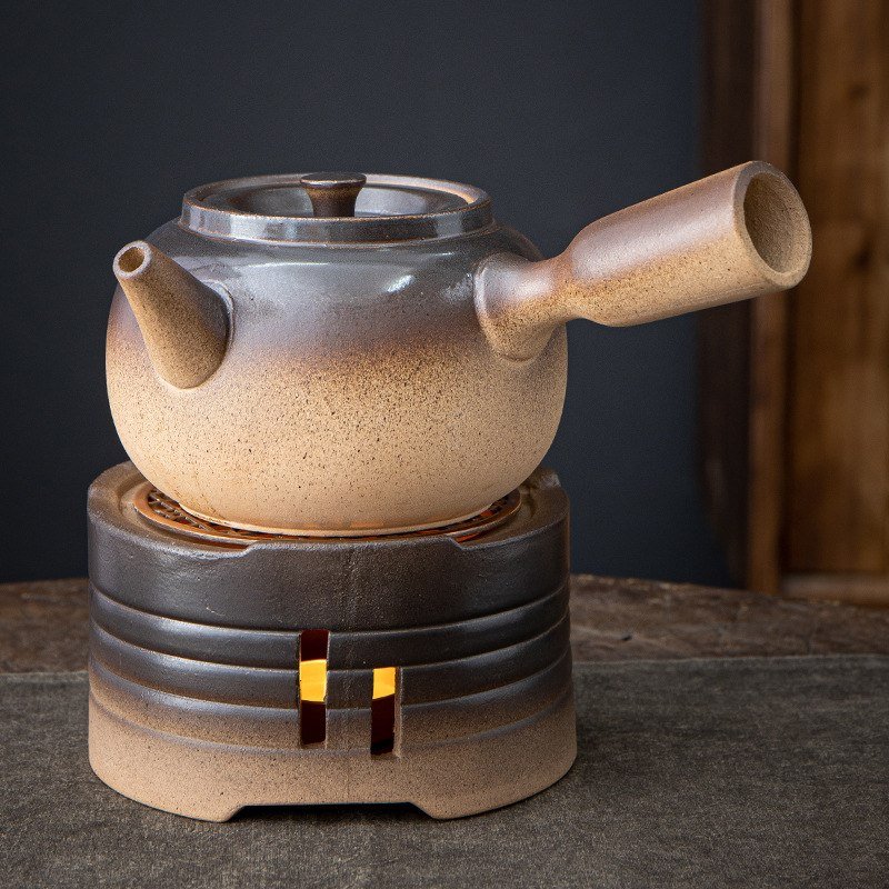 Crafted from high-quality pottery, this teapot showcases a rough-textured exterior with warm, earthy tones that evoke a sense of tradition and simplicity. The side-handle design ensures a secure grip for precise pouring, making it both functional and stylish. Its robust construction not only enhances durability but also complements its antique aesthetic, reminiscent of an antique cast iron tea kettle.