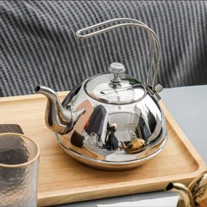 Crafted from high-quality stainless steel, this teapot is built to last. The sturdy material ensures durability while keeping your tea at the right temperature for a longer time. The gooseneck design isn’t just about aesthetics; it’s functional, allowing for a controlled and consistent pour. For a complete tea experience, pair it with a stainless steel cup for tea, adding an extra layer of elegance to your tea routine.