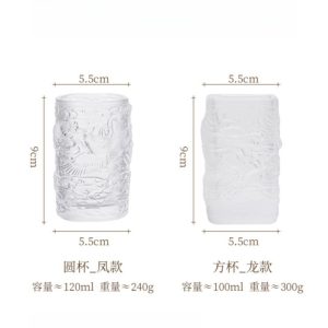 The Dragon and Phoenix are deeply rooted in Chinese mythology, symbolizing strength, wisdom, and auspicious energy. The Dragon pattern reflects power and vitality, while the Phoenix pattern represents grace and renewal. Each design is meticulously sculpted into the crystal glass, creating a textured masterpiece that enhances both visual appeal and tactile experience. Explore other culturally inspired designs with our dragon tea cup set.