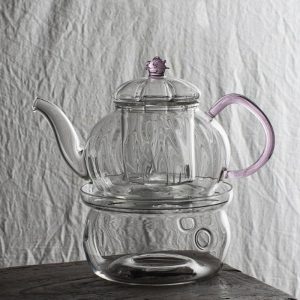 Keep your tea at the perfect temperature with the Vintage Transparent Clear Glass Tealight Teapot Candle Warmer for Sale, ideal for use with a Teapot with Warmer or stainless steel teapot with infuser.