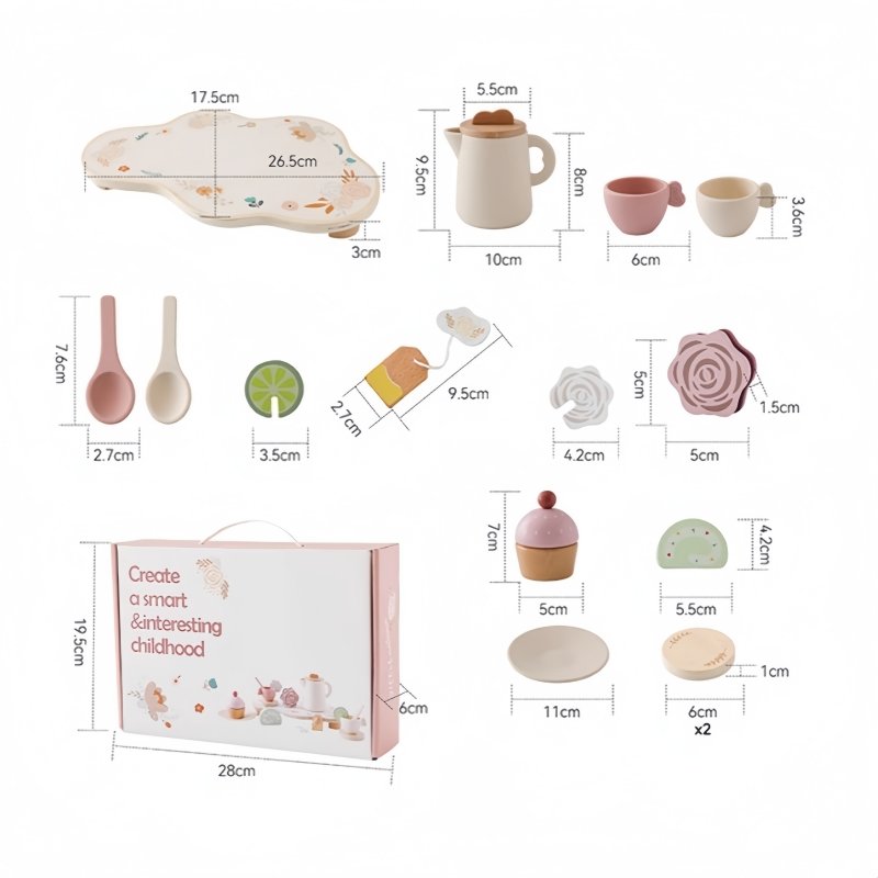 Made from high-quality, eco-friendly wood, this tea set is durable and safe for children. The smooth finish and non-toxic paint make it easy to clean and safe to handle. Unlike plastic toys, wooden sets offer a more authentic experience, providing a sensory delight as children engage in imaginative tea-time fun. The durable construction ensures that the set will last for years to come, even with regular play.