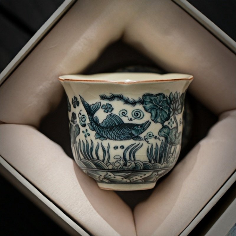 Crafted from high-quality porcelain, the River Sturgeon Theme Gongfu Tea Cup is built to last while maintaining its beauty. The smooth surface of the porcelain allows the intricate blue and white design to shine, while the high-fired ceramic ensures durability and resilience. The fine craftsmanship and the use of traditional Ru kiln techniques ensure that this cup will remain in excellent condition even with frequent use.