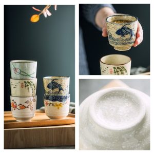 These tea cups are available in five distinct hand-painted patterns: Bird, Fish, Lotus, Flower, and Boat. Each pattern adds its own unique touch to the tea cup, allowing you to choose the one that best fits your personal style or the theme of your tea ceremony. Whether you prefer the graceful depiction of birds or the serene image of a lotus flower, each cup brings a unique visual charm. Pair these cups with an antique Japanese teapot for a traditional tea experience that’s both beautiful and meaningful.