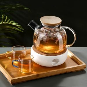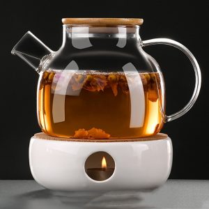 Enjoy the perfect tea-drinking experience with the Wooden Lid Large Capacity Clear Glass Teapot with Tea Light Wax Warmer Base. Designed for both function and elegance, this high-quality glass teapot lets you watch your tea leaves unfurl while ensuring an even infusion. The built-in tea light warmer keeps your tea at the ideal drinking temperature, making it perfect for extended tea sessions. Whether you’re brewing herbal infusions, delicate green teas, or rich black teas, this teapot enhances every sip.