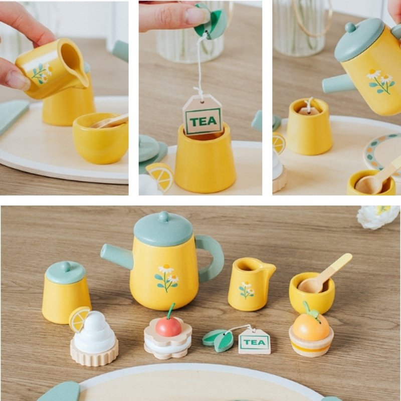 Wooden Toy Tea Set Lemon Childs Afternoon Aesthetic Cute Tea Sets