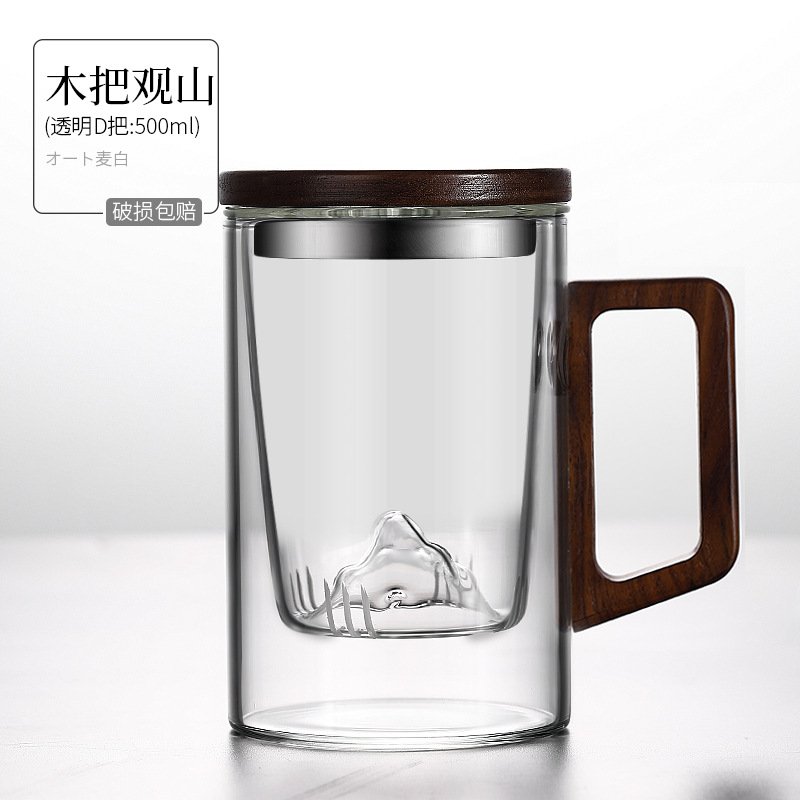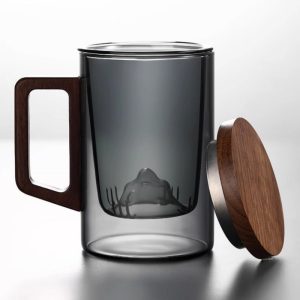 The Wooden Handle Viewing Mountain Grey Borosilicate Glass Tea Cup with Infuser Mug combines exquisite craftsmanship with modern design, offering a tea experience like no other. Made from premium borosilicate glass, this tea cup is built to withstand high temperatures while maintaining a sleek, transparent appearance. The wooden handle not only provides a natural, warm touch but also ensures a comfortable grip while enjoying your favorite brew. Featuring an integrated infuser, this mug is ideal for brewing loose-leaf tea, making it both functional and stylish.