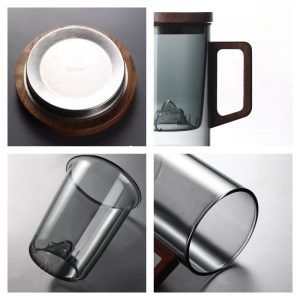 The wooden handle of this tea mug is designed to enhance both the functionality and aesthetics of the cup. Its ergonomic shape makes it easy to hold, ensuring comfort during your tea time. The viewing mountain grey color adds a touch of sophistication to the cup, and the transparent borosilicate glass lets you admire the tea as it brews. If you’re looking for similar designs, be sure to explore our glass tea cup with infuser and lid collection, which offers a wide range of stylish and practical tea cups.