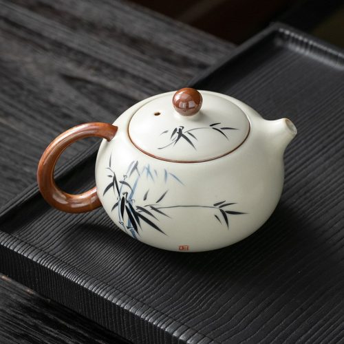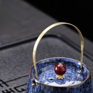 Handcrafted from high-quality porcelain, this teapot combines the timeless beauty of Chinese design with practical features. The sturdy brass handle offers a touch of elegance and ensures a comfortable grip, making it both stylish and functional.