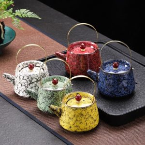 Choose from a range of vibrant colors, including elegant yellow, bold red, and classic blue. Each teapot boasts a unique glazed finish with intricate crackle patterns, perfect for enhancing your ancient Chinese teapot collection or complementing your Chinese tea ceremony set.